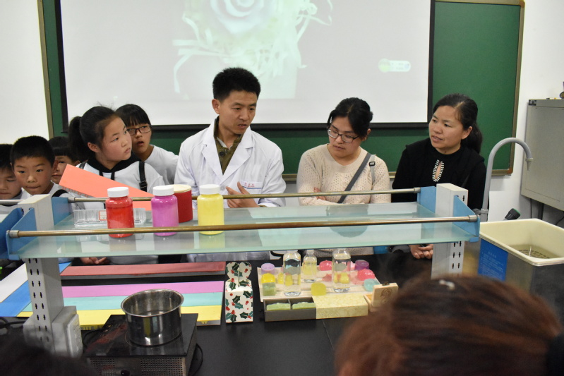 4月11日下午,“参观实验室”活动在化学南楼407实验室开展,该活动由我院社团——化学DIY创新社主要负责。刘庄小学30多名小学生代表和4名教师参与此次活动。 活动伊始,负责人潘家梁同学表达了对老师、同学们的欢迎,并介绍了此次活动的主要内容和实验室注意事项。接着,我院陈得军老师向大家具体讲解了手工皂以及玉米淀粉涂料的制作方法和环保无害性。之后,化学DIY创新社几名大二学生动手操作,与同学们进行互动,现场制作了几块精美的手工皂,以现场演示和答疑解惑的方式,生动形象的展示了化学的神奇魅力。现场气氛非常活跃,同学们纷纷感慨化学真有趣。 “化学有意思吧,希望同学们将来都报考河师大,报考化学化工学院!”陈得军老师看到同学们兴趣盎然的样子,开玩笑地说道。惹来同学和老师们的一片叫好声。 活动将要结束的时候,化学DIY创新社赠送每位老师一个礼盒,每名学生一块精美的手工皂留作纪念。该活动不仅向校外学生展示了我院的实验室,而且展示了化学与生活的密切关系,开阔小学生的视野,增加了他们对化学的兴趣,更向往大学生活。 (化学化工学院 方庆库) |