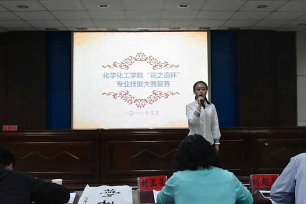 5月1日晚,化学化工学院举办的“花之语”杯专业技能大赛复赛于化学北楼五楼会议室进行,院党委副书记李朝阳受邀观赛。担任本次复赛评委的有:院团委书记卢鑫,化学化工学院教育研究所所长刘玉荣,各年级专兼职辅导员。复赛内容分为粉笔字展示、才艺展示和即兴演讲三部分。 本次“花之语”杯专业技能大赛复赛不仅能够让同学们有机会展示自己的特长,而且有助于提高他们的应变能力,为日后走上工作岗位打下坚实基础。 (化学化工学院 李依朦 王瑄)
