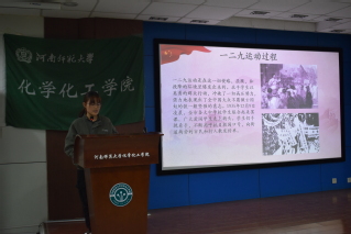 青年兴则国家兴,青年强则国家强。12月8日,我院社团联合会联合各挂靠社团于化学北楼五楼会议室开展主题为“缅怀一二九,扬帆再起航”的团日思想交流研讨会。 活动前期,院社团联合会对活动任务进行明确分工,各部门做好活动准备,确保活动有序进行。活动伊始,陈兴鸽同学组织在场人员观看一二九运动沙画视频并结合一二·九运动背景、过程、结果和意义对一二九运动进行介绍。接着,各社团代表以情景剧的形式再现了一二九运动的完整过程。剧中学生们发自肺腑饱含热血的爱国之言,激发了在座同学的爱国热情。随后,活动进行有关党史、团史的“你说我猜”小游戏。在此环节中,同学们积极参与,相互配合,参与游戏的同学题目事件发生时间和历史意义描述有助于在产人员回顾中国共产党发展史,坚定听党话、跟党走的理想信念。最后,两位同学上台发表感悟,他们表示,此次活动的开展更加了解了一二九运动,树立了“不忘初心跟党走,牢记使命勇担当”的意识。 本次活动的成功举办,加深了青年对一二九运动精神的领悟,弘扬了青年爱国之志,坚定了听党话、跟党走的理想信念,增强学生主动承担时代责任的使命感。 (化学化工学院 王怡丹 乔曌) |