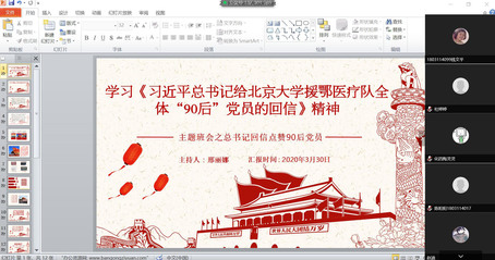 为积极引导学院青年学生深入学习《习近平总书记给北京大学援鄂医疗队全体“90后”党员的回信》精神,进一步坚定目标追求,树立报效祖国的鸿鹄志向,3月31日,我院组织开展“学回信精神 砺青春志向”主题教育活动。 活动伊始,各支部团支书通过钉钉直播的形式带领大家一起诵读了《习近平总书记给北京大学援鄂医疗队全体“90后”党员的回信》内容。结合信中习近平总书记对青年一代的嘱托,大家围绕坚定理想信念、强化使命意识、锤炼品德修养三个方面展开激烈讨论。期间,有同学分享,在读完总书记的回信内容后感受到肩上的重重责任,我们更应从此次防疫战役中学习先进事迹、锤炼意志品德、坚定理想信念;有同学谈到,此前学习十九大原文时看到的“青年一代有理想、有本领、有担当,国家就有前途,民族就有希望。”这次又看到了,通过此次疫情防控阻击战对这句话有了更深入的理解和感悟,更加感受到了党和人民对当代青年的殷切期盼。最后,团支书传达学院对此次学习的要求,希望大家牢记习近平总书记的嘱托和期望,内化于心、外化于行,用实际行动践行“回信精神”,在学习和工作中磨炼志向,奋力为祖国发展的美好画卷添一抹油彩。 学院借助疫情防控阻击战的实践大课,牢牢抓住思想政治引领主线,组织各年级多次召开线上班会、主题团日活动进行思想教育引导,让学生能够实现理想上补钙、本领上补强、担当上补劲,以更昂扬的姿态和饱满的热情投入到学习、工作和生活中。 (化学化工学院 钱文平 朱雪颖) |