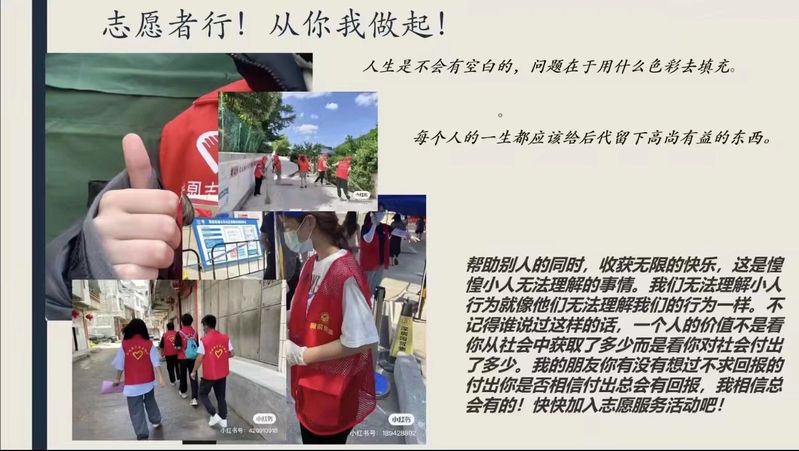 为践行社会主义核心价值观,进一步弘扬“奉献、友爱、互助、进步”的志愿服务精神,10月30日下午,我院青年志愿社于线上举办了“志愿知识宣讲”活动。此次会议由社团副社长王梦洁主持。 会议伊始,主持人为大家讲解了志愿精神的内涵以及志愿服务的性质和原则,让社员对“志愿服务”概念有了初步的认识。活动期间,主持人强调,随着我国志愿队伍的不断扩大,志愿服务事业也正朝着更加规范有序的方向发展,鼓励作为志愿服务的重要群体的大学生积极主动参与进来。随后,主持人向大家展示了社团成员进行志愿服务的照片。在照片中,同学们共同参与志愿活动,齐心为同学们服务,身着红色马甲的坚毅背影激励着社员。会议最后,主持人对本次活动进行总结,号召大家要让志愿者精神持续闪光,践行志愿服务要“永远在路上”,参与活动的社员也纷纷表示个人对为志愿服务事业贡献力量的激情。 本次宣讲活动旨在鼓励更多的同学参与到志愿活动中去,同时在学校内部为社团树立良好的形象,展现师大学子的良好精神风貌,激发师大学子向上向善、诚信互助的磅礴前行力量。 (化学化工学院 刘戈歌 王思嘉) |