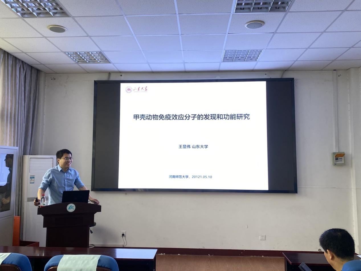 5月10日上午,应我院邀请,山东大学生命科学学院王显伟教授在水产学院202会议室作了题为“甲壳动物免疫效应分子的发现和功能研究”的学术报告。水产学院教师、研究生和部分本科生共计70余人聆听报告会,会议由水产学院党委书记孔祥会主持。