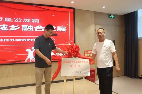 长垣市教育体育局主任科员段德世、常村镇党委书记王洁、我校基础教育集团办公室主任张银付先后讲话。基础教育集团办公室副主任罗强、常村镇人民政府主任科员刘鹏代表双方在合作协议上签字。在现场领导和师生见证下,双方代表共同为学校揭牌。