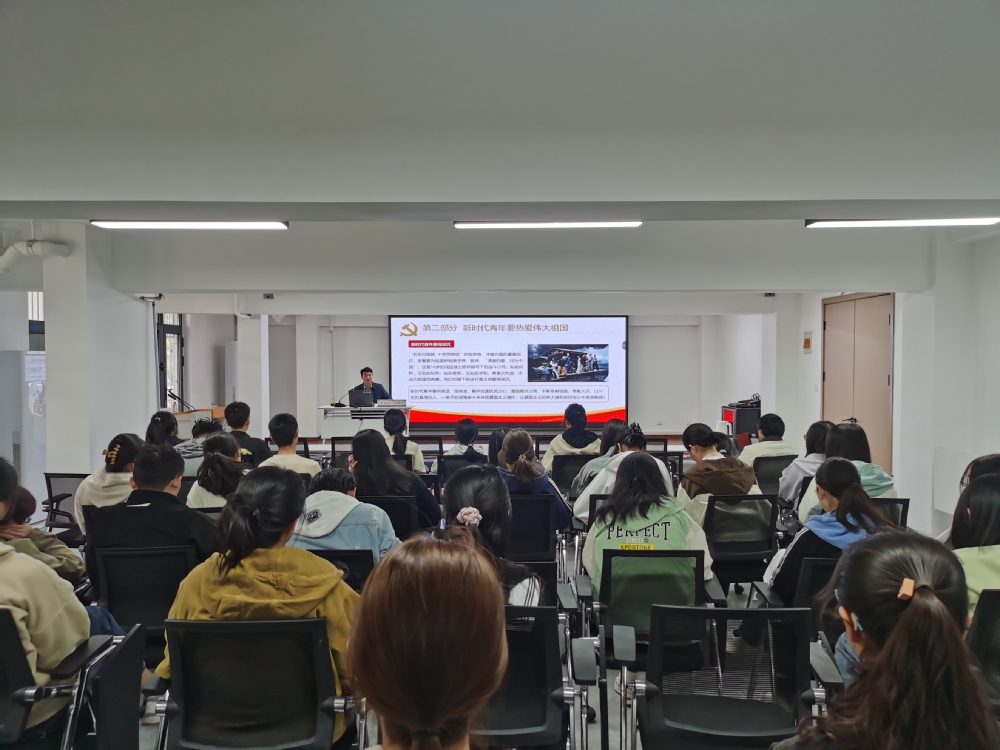 宋京双以“做担当民族复兴大任的新时代青年”为主题,以纪念五四爱国运动105周年为切入点,从树理想、爱祖国、担责任、勇奋斗、练本领、修品德六个方面,带领同学们学习了习近平总书记在纪念五四运动100周年大会上的重要讲话精神。他强调,同学们要争做担当民族复兴大任的新时代青年,并提出了三点希望,一是要坚定理想信念,把个人理想追求融入党和国家事业发展中;二是要增强本领才干,珍惜大好学习时光,求真学问、练真本领;三是要勇于担当作为,脚踏实地、埋头苦干,真正将所学所知运用到实践中去。