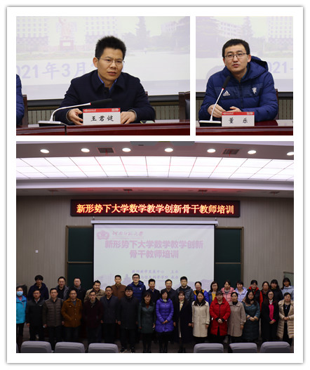 王君健对参加培训教师表示欢迎和感谢,对教师教学发展中心基本情况、功能定位和2021年将开展的重点工作进行介绍。他希望各位教师通过此次“新形势下大学数学教学创新”主题培训,在教学内容、教学方法等方面有所斩获,教学水平有所提升。董乐对培训课程安排进行讲解,对培训专家进行介绍,对培训纪律提出要求,并表示他将为培训做好相关服务工作。