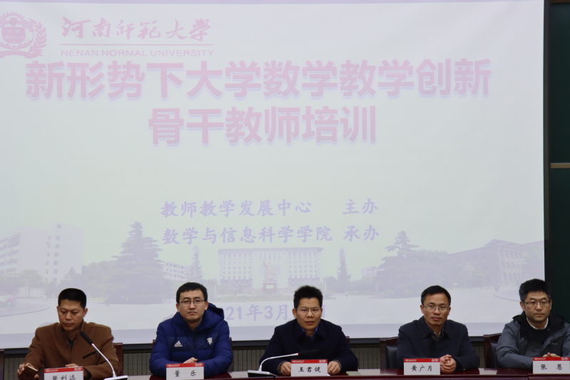 3月20日上午,由教师教学发展中心主办、数学与信息科学学院承办的教育部网络培训中心“新形势下大学数学教学创新骨干教师直播培训”河南师范大学分会场在数学与信息科学学院报告厅举行。教师教学发展中心主任王君健、副主任张利远、数学与信息科学学院副院长黄广月、董乐、计算机与信息工程学院副院长张恩、大学数学相关课程教师参加开班仪式。会议由张利远主持。