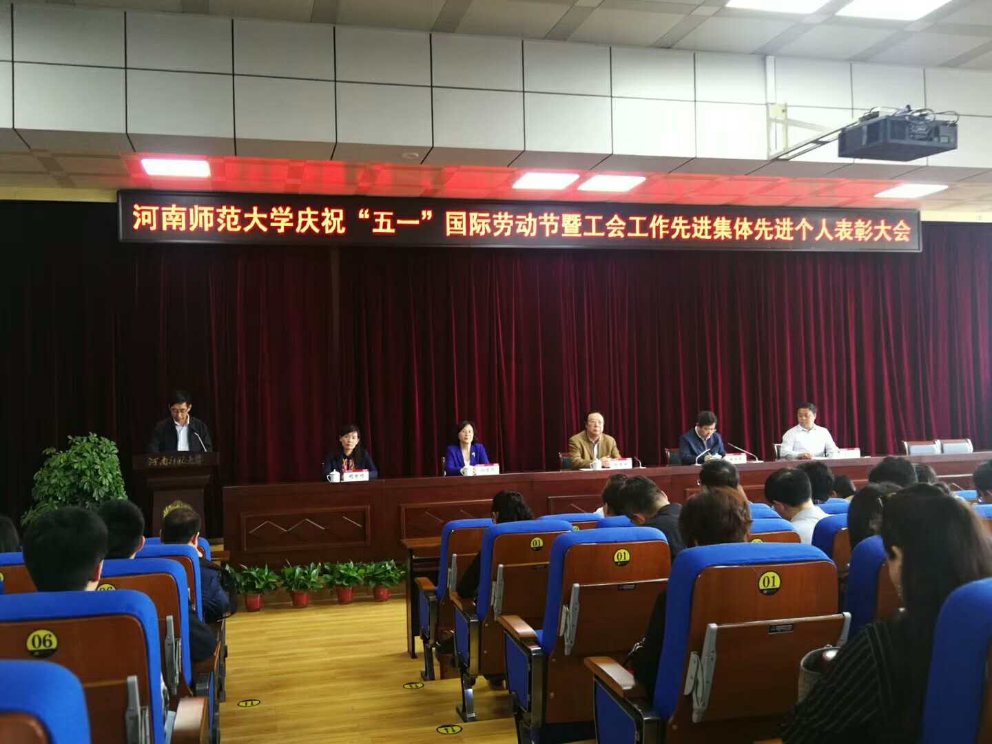 4月27日下午,“河南师范大学庆祝‘五一’国际劳动节暨工会工作先进集体先进个人表彰大会”在新554楼党校教室举行。党委书记赵国祥,党委副书记、工会主席臧振春,工会副主席孙玉珍、宋卫平,女工委员会主任胡世巧以及受表彰的先进集体代表、先进个人共300余人出席此次表彰大会。大会由臧振春主持。