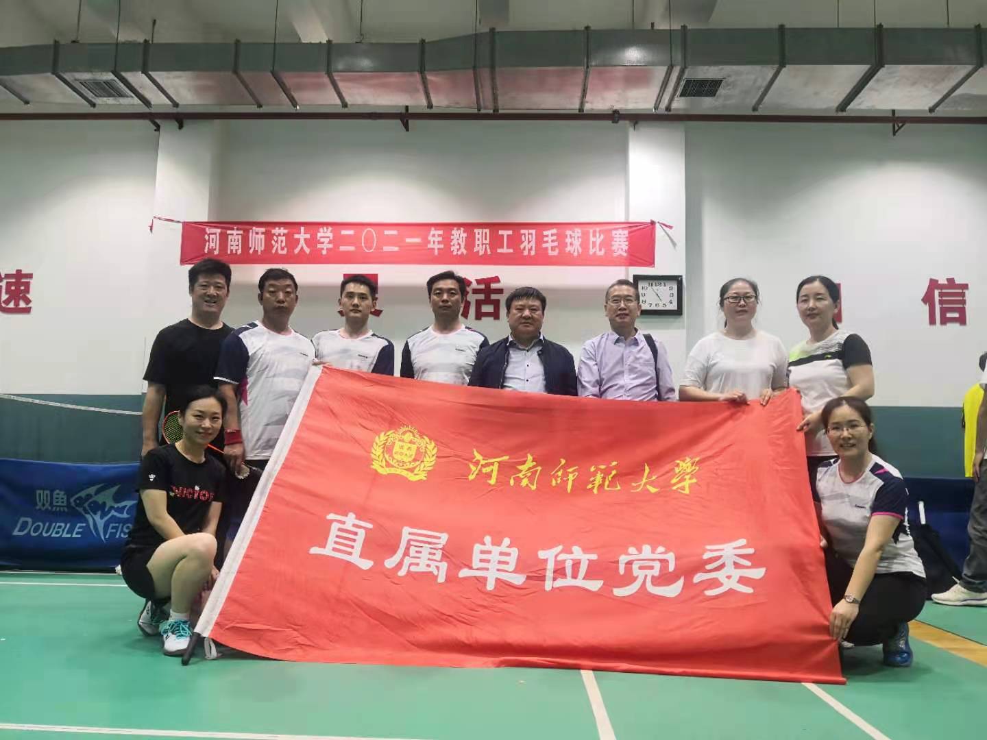 为丰富教职工的业余文体生活,促进身心健康,五月上旬校工会举办了河南师范大学2021年教职工羽毛球团体赛,比赛设置“男双、女双、男单、女单、混双”五个项目。5月13日下午,团体赛半决赛、决赛在西校区综合馆一楼举行,直属单位工会代表队全力以赴、奋勇拼搏,在全校32支代表队中冲入前八并喜获“团体赛优胜奖”。
