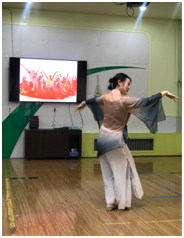 “灯火里的中国青春婀娜,灯火里的中国胸怀辽阔……”本次活动以开场舞《灯火里的中国》拉开了序幕,展现了灯火里的繁华似锦和安详宁静、灯火里的奋发图强和生生不息。紧接着由靳天琪老师带来了古典舞《半壶纱》优雅曼妙的舞姿,月光下摇曳的竹影,荡漾着别样的美……;张思敏老师以优美婀娜的肢体语言带来了傣族舞《月亮》。最后,团支部全体教师以诗朗诵《我有一个梦》,为本次活动画出了一个圆满句号。