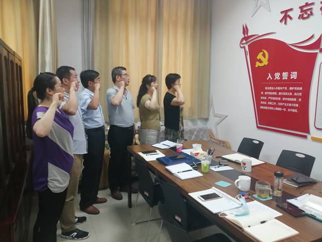 魏海琴首先带领支部全体党员重温了入党誓词:“我志愿加入中国共产党,拥护党的纲领,遵守党的章程,履行党员义务,执行党的决定,严守党的纪律,保守党的秘密,对党忠诚,积极工作,为共产主义奋斗终身,随时准备为党和人民牺牲一切,永不叛党”,与会党员庄重严肃的进行了宣誓,在重温党的光辉历史和优良传统中补足精神之钙。