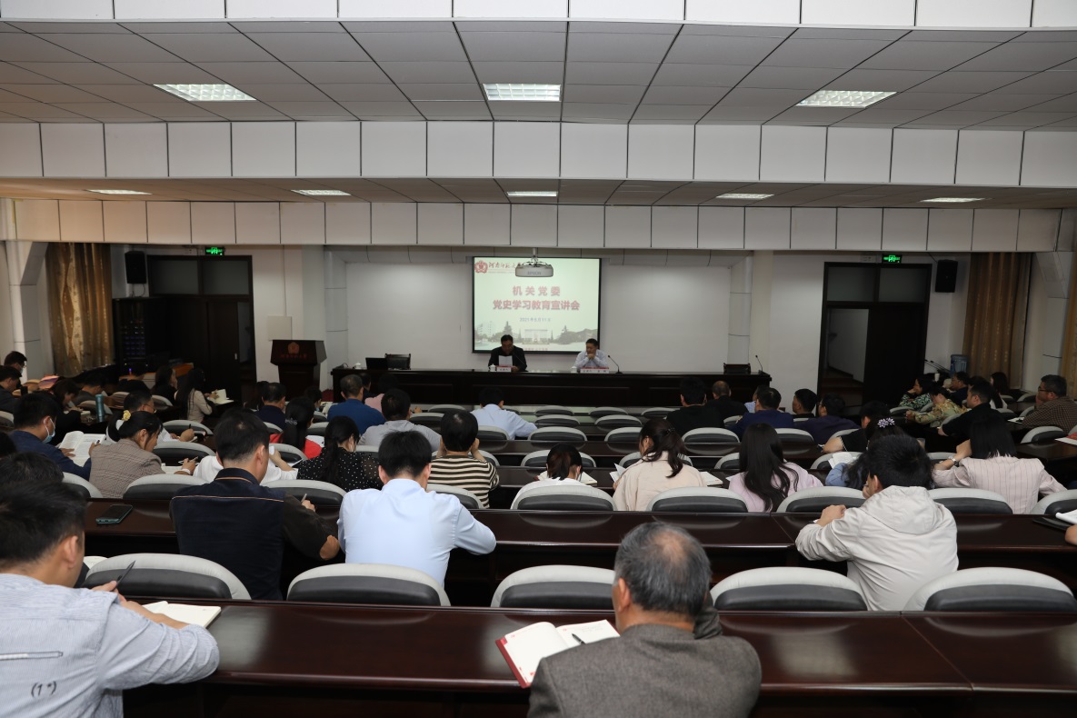 5月11日上午,机关党委在勤政楼第四会议室召开党史学习教育宣讲会,机关党委全体党员参会,宣讲会由机关党委书记马新峰主持。
