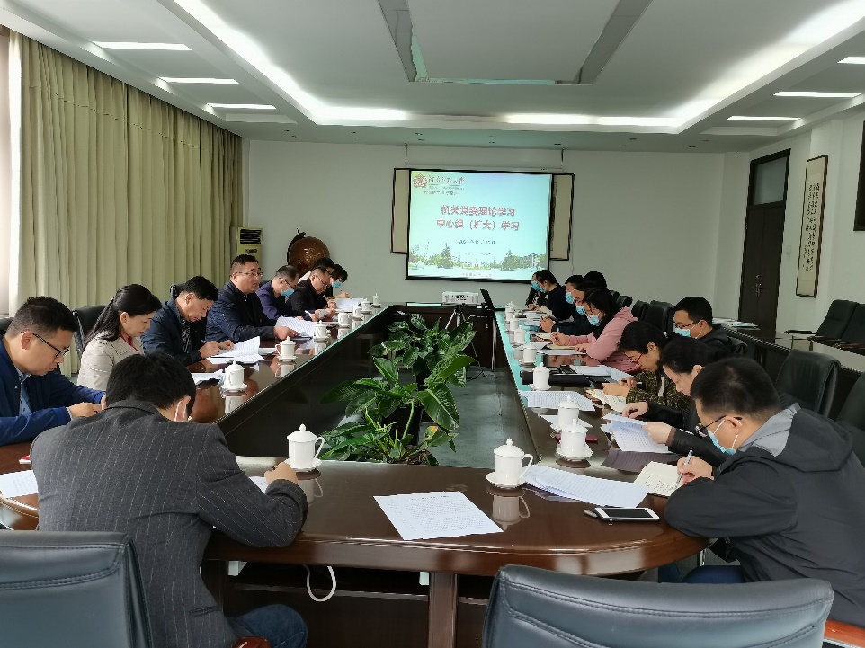 10月12日上午,机关党委在勤政楼第一会议室召开理论学习中心组(扩大)学习会,机关党委委员、机关纪委委员、各党支部书记和党员代表参加了会议,会议由机关党委书记马新峰主持。