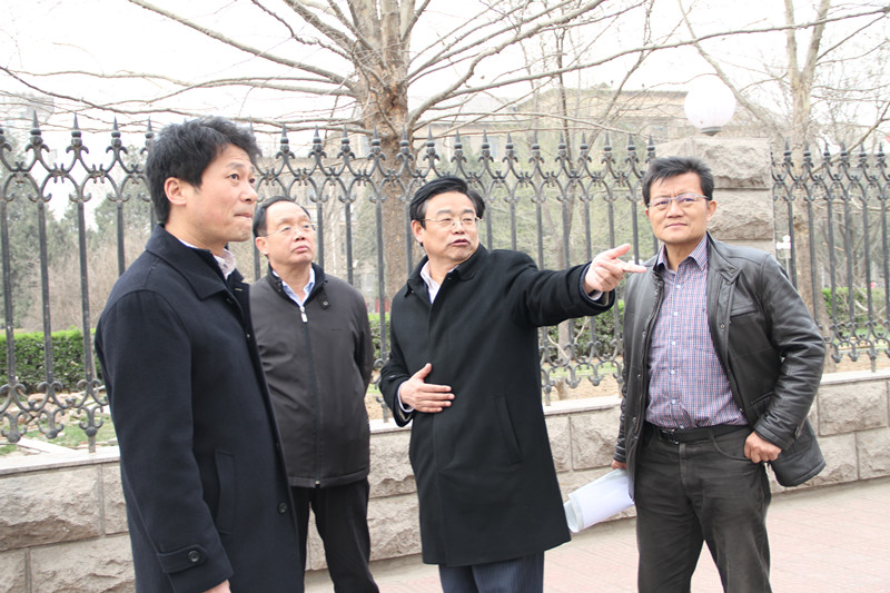 3月22日下午,校长焦留成、副校长王新生在基建处处长宋鲁伟、副处长陈伯平的陪同下,视察了西校区南大门工程。