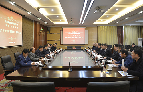 在郭轲、常俊标等各位领导的见证下,于伟、岳杰勇分别代表双方签订了《河南省地质矿产勘查开发局 河南师范大学产学研合作框架协议》。根据协议内容,双方将联合建设产学研合作平台,共同开展河南环境生态修复与治理研究,不断加强人才交流与培养,实施清洁能源开发利用示范项目,实现双方的互利共赢发展。