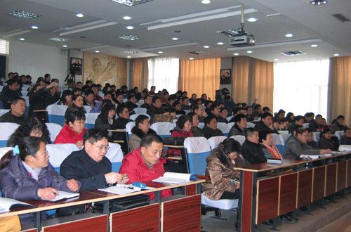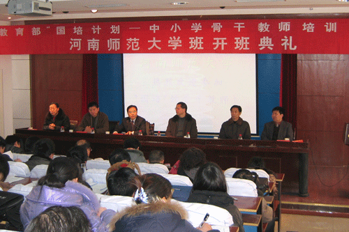经过认真的组织和准备,1月5日上午9时30分,教育部“国培计划——中小学骨干教师培训项目”(以下简称国培计划)河南师范大学班开班典礼仪式在物理与信息工程学院学术报告厅举行。省教育厅师范教育处处长尹洪斌、副处长杨永盛、科长胡全胜,我校副校长黑建敏,“国培计划”项目执行办主任、政治与管理科学学院副院长赵海山,相关教学学院的领导和各学科组教师及班主任出席了开班典礼。大会由“国培计划”行政保障办主任、继续教育学院副院长石磊主持。接受首期培训的政治和数学两个学科共计200名学员参加了开班典礼仪式。