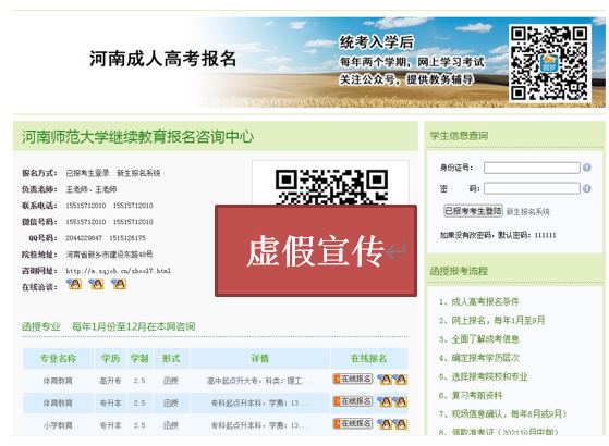 一、该类培训机构与河南师范大学继续教育学院不存在任何合作关系,我院从未在非官方招生网站如百度、抖音等互联网媒介平台发布任何形式招生信息。其制作的招生宣传网站、广告视频以及通过其招生宣传网站发布的信息皆由其单方发布,与河南师范大学继续教育学院无关。
