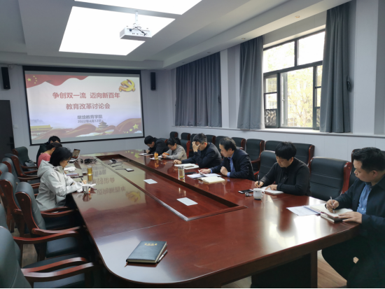 4月12日下午,学院党总支在二楼会议室组织召开理论学习中心组(扩大)会议,围绕近期高校教育改革相关内容学习展开专题讨论,学院领导班子、总支委员、科级干部参会。会议由学院党总支书记张喜平主持。