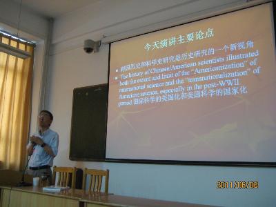 6月8日上午,美国加州州立理工大学王作跃教授在政治与管理科学学院二楼学术报告厅做了题为《留美华人科学家与跨国科学史研究》的报告,学院有关领导、相关专业的教师、研究生以及正在我院接受培训的新密市教师近100人聆听了报告。