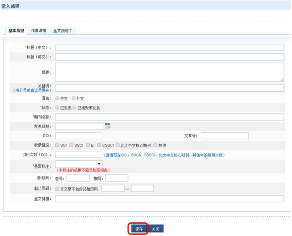 负责人如无法通过个人成果库或第三方导入方式添加成果,可手动录入项目组成果,其中带*为必填项