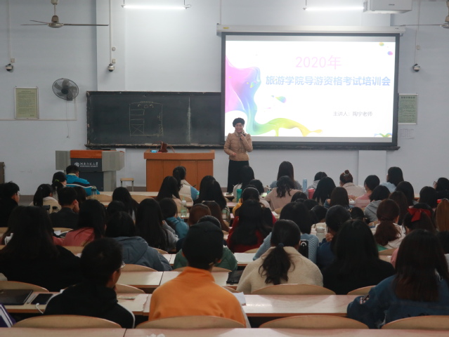 11月11日下午,旅游学院于新554教学楼201教室举办2020年导游资格考试培训会。新乡市首位国家高级导游、旅游学院教师陶宁受邀对导游资格考试进行讲解,旅游学院2019级、2020级全体考生参加培训会。