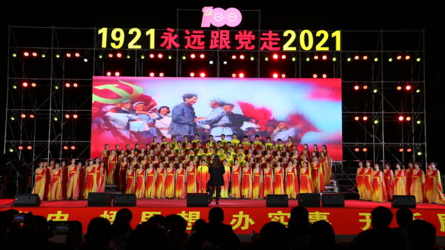 奋斗百年路,启航新征程,为庆祝中国共产党建党100周年,4月18日晚,由共青团河南师范大学委员会主办,教育学部和音乐舞蹈学院共同承办的“永远跟党走”主题合唱比赛在西区操场成功举行。旅游学院合唱团118名学生参与此次比赛,凭借昂扬的姿态和热情的演唱打动了现场的评委和观众,荣获一等奖和最佳形象奖。