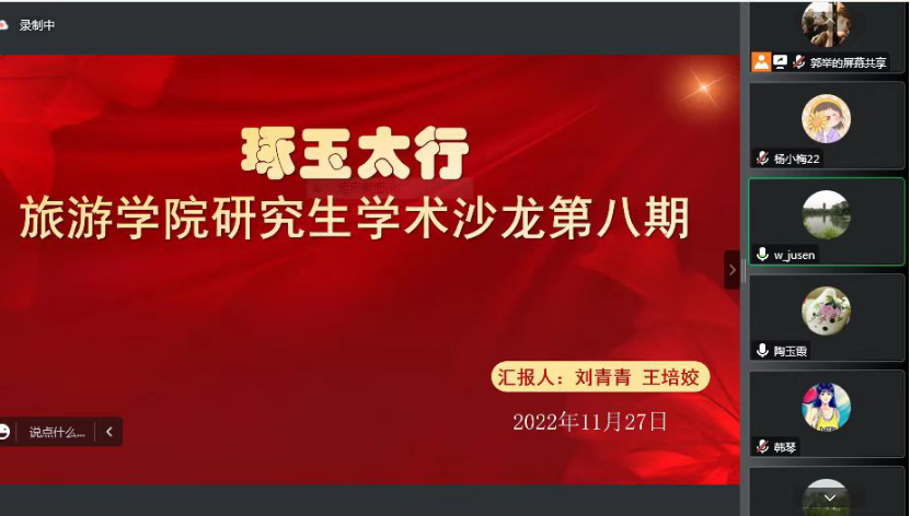 2022年11月27日晚,行知大讲堂—琢玉太行(研究生学术沙龙)第八期在线举行,冯峰、陶玉霞、韩琴三位硕士生导师及其指导的两名研究生受邀进行此次学术分享,学院师生近百人参加。
