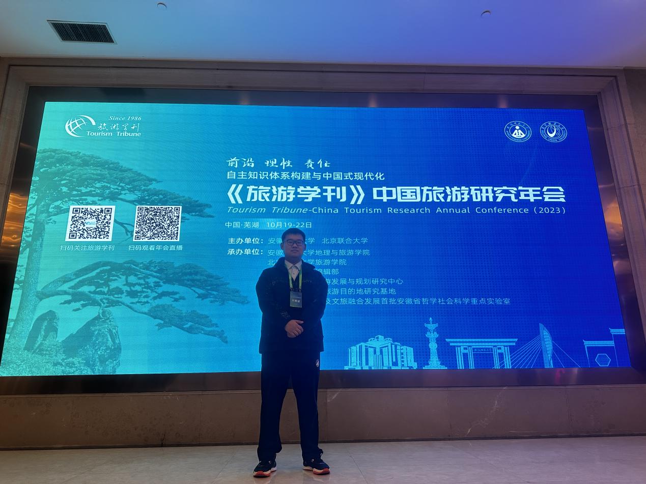 10月20日-22日,2023《旅游学刊》中国旅游研究年会学术会议在芜湖举办。本次会议由安徽师范大学、北京联合大学主办,安徽师范大学地理与旅游学院等承办,年会以自主知识体系构建与中国式现代化为主题。我院硕士研究生郭举和余嘉琪参加了会议。