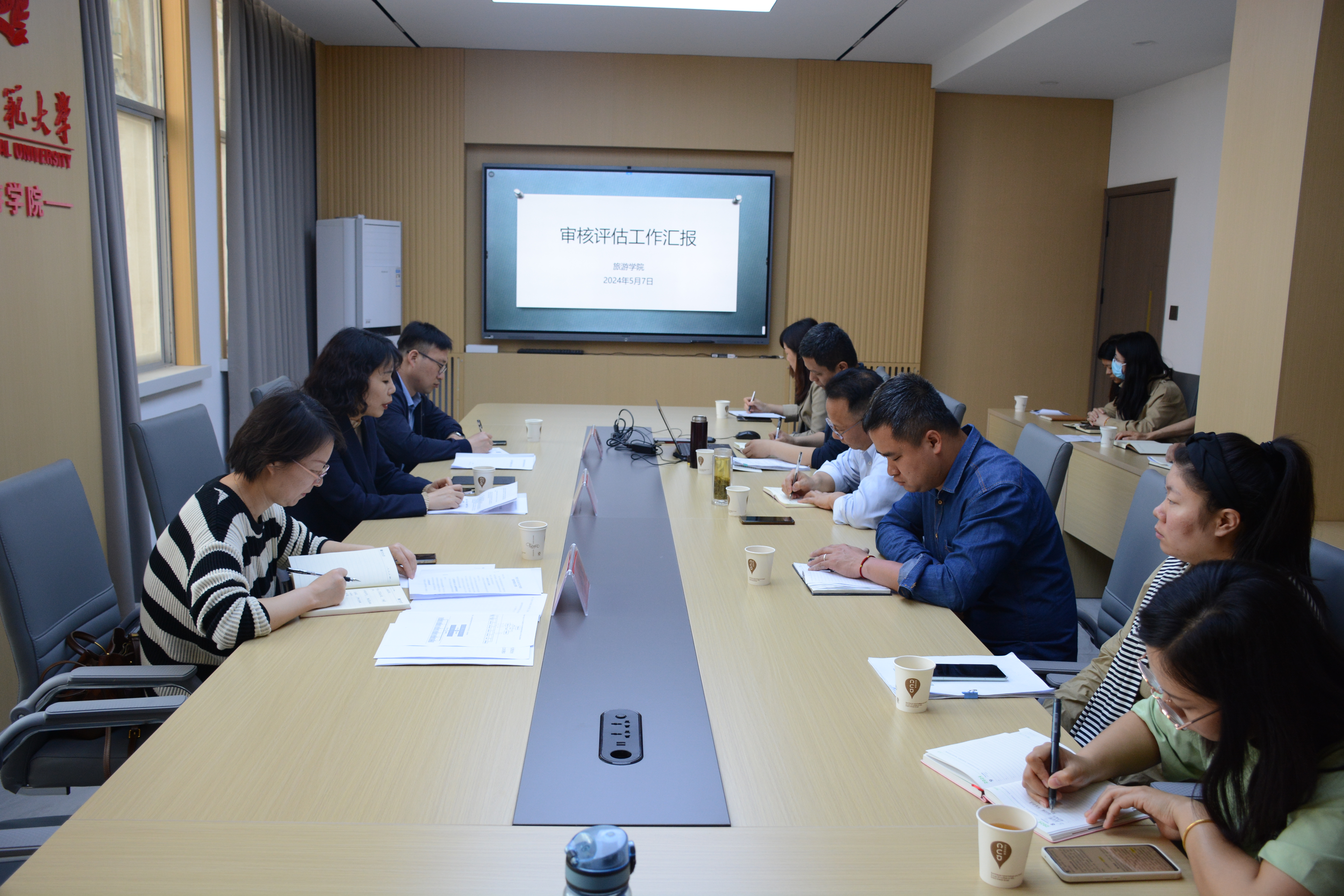 2024年5月7日上午,学校评估办孟利艳、孙晓、刘炳辉莅临我院进行本科教育教学审核评估工作检查指导。参加审核评估工作汇报会的有旅游学院党委书记冯峰、教学院长付强、科研院长王二红、行政院长端木凡昌以及旅游学院审核评估办公室全体成员。会议由付强主持。