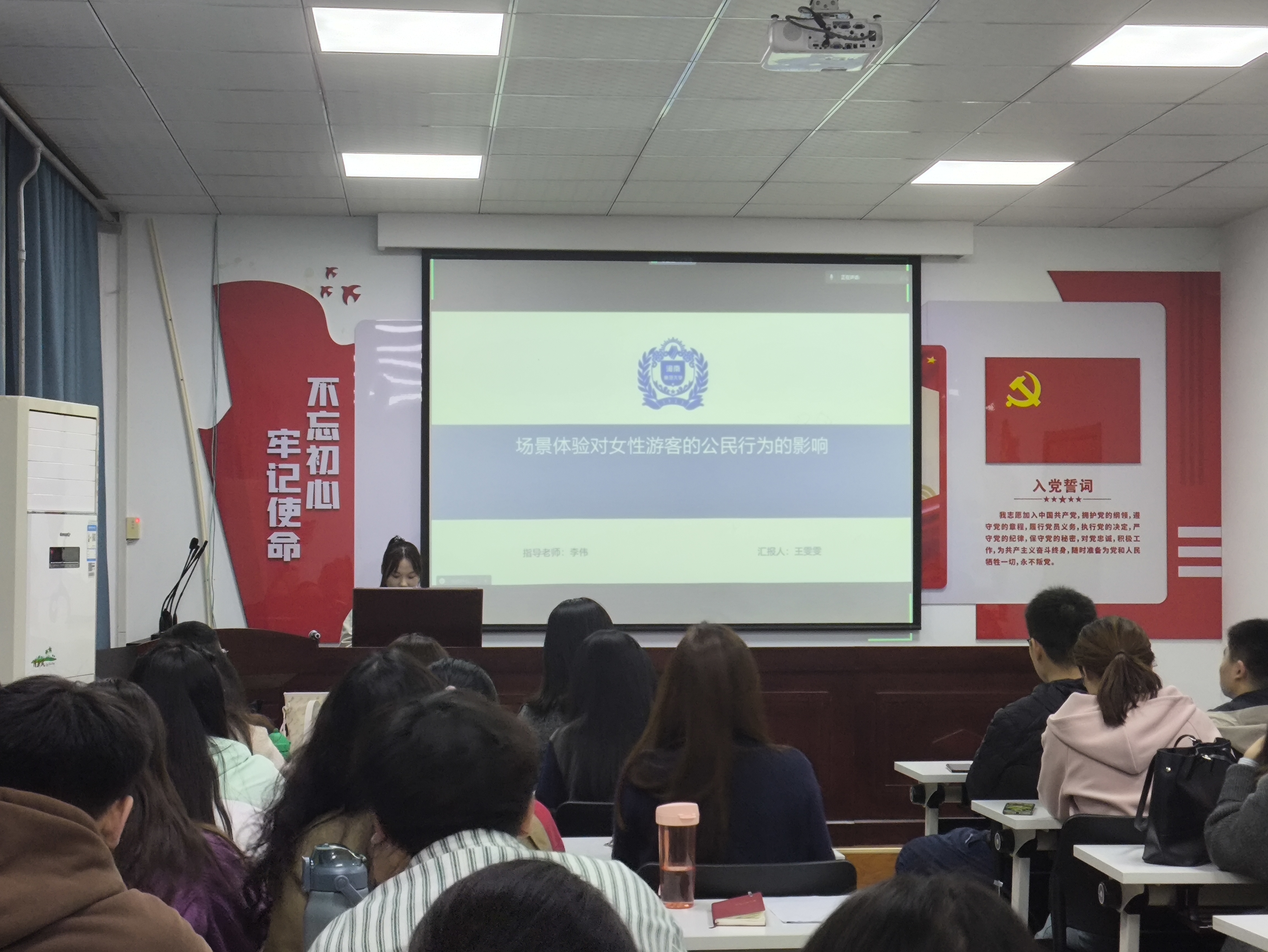 首先,吴兰兰同学以《人工智能赋能中学地理课程教学应用研究》为主题,深入探讨了现代科技如何赋能教育领域。她将人工智能技术与中学地理课程的教学实践相结合,通过案例分析展示了人工智能在提升教学效率、个性化学习体验以及增强学生空间思维能力等方面的应用潜力。吴兰兰同学的报告不仅理论联系实际,还提出了多项创新性建议,为在场师生带来了深刻的启示。随后,王雯雯同学汇报了题为《场景体验对女性游客公民行为的影响》的报告。随着文化和旅游的深度融合,许多旅游目的地开始推出专门针对女性游客的旅游项目和宣传活动,旨在吸引更多女性游客。这些项目包括“网红墙拍照打卡”、“体验当地文化与历史主题”以及“品尝当地美食特色”等场景体验。随着女性意识的觉醒,越来越多的女性游客希望前往特定地点寻找能量,放松心情,缓解压力,同时享受旅游观光的乐趣。在这种背景下,针对女性游客的场景体验应运而生。王雯雯同学的研究揭示了场景体验对女性游客行为的积极影响,为旅游行业的创新发展提供了新的视角。