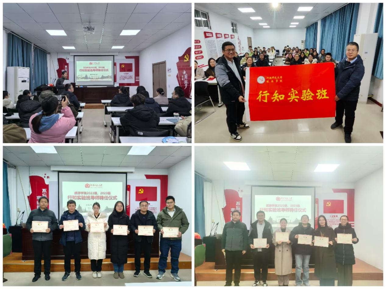 付强向在场师生详细介绍了行知实验班的成立初衷、基本情况以及个人心得,强调了实验班在培养创新人才、推动学科发展中的重要作用,展望了行知实验班发展前景,并对历届行知实验班班主任的辛勤工作表示了感谢。随后,旅游管理专业的张芷若、人文地理与城乡规划专业的杨莹、地理科学专业的袁凯等作为学生代表进行发言,满怀激动地分享了他们加入行知实验班的喜悦心情和对未来的展望。在开班仪式之后,付强宣读了2022级和2023级行知实验班导师聘任名单,并为导师代表颁发了聘任证书。孟帅康代表2024级行知实验班接过班旗,并与大家合影留念。