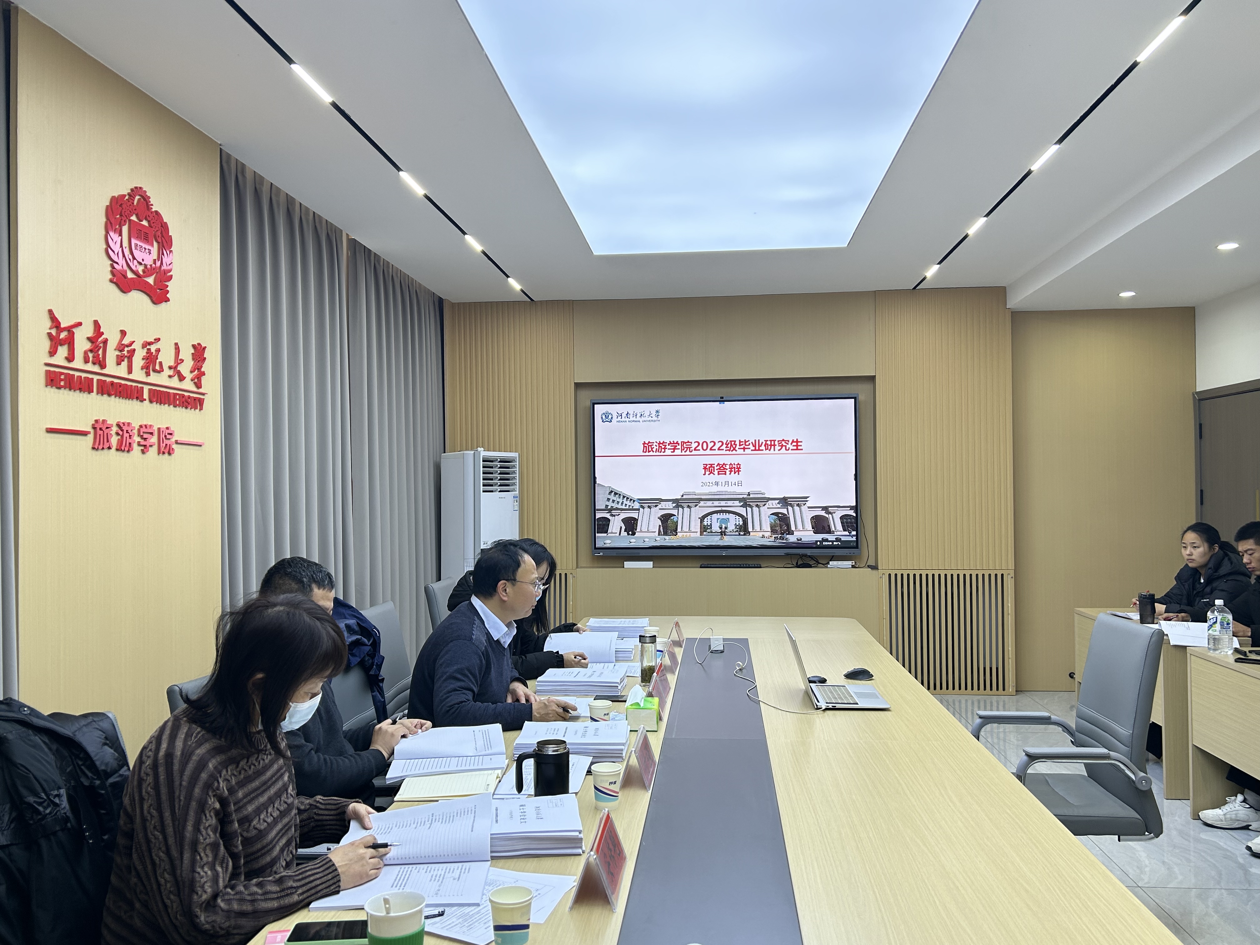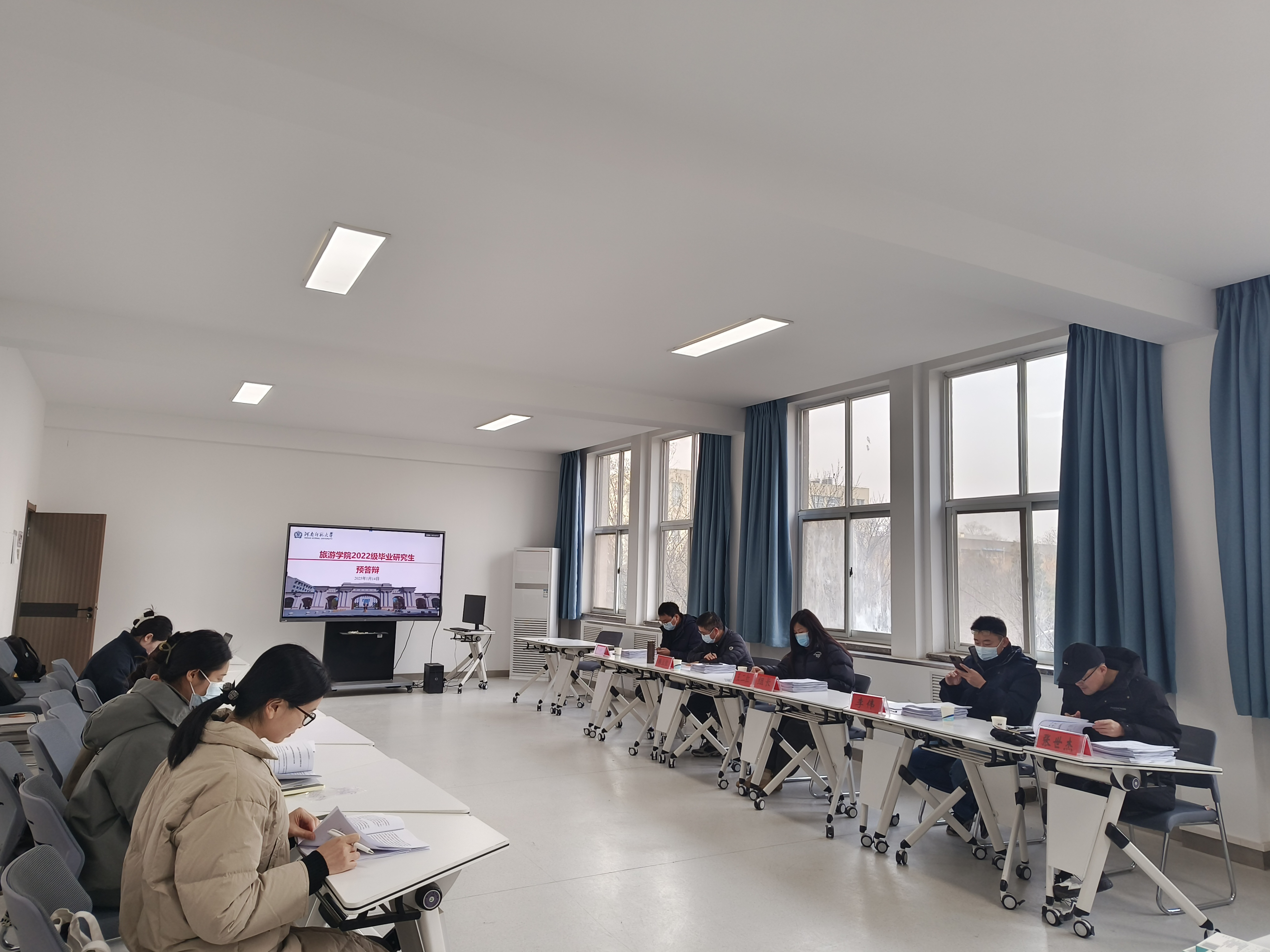 为切实提高我院硕士论文的整体水平、保障毕业论文质量,2025年1月14日,我院成功举办了2025届硕士研究生毕业论文预答辩。本次预答辩采用线上线下相结合的方式进行,分为四个答辩组,第一组由副院长王二红任组长,韩立钦、李伟、张世杰、李颜颜任预答辩委员;第二组由院党委书记冯峰任组长,付强、安传艳、贾蒙蒙、魏建飞任预答辩委员;第三组由外国语学院党委书记、旅游学院研究生导师赵成福任组长,王万同、闫喜琴、吕富成、刘迪任预答辩委员;第四组由商学院院长、旅游学院研究生导师刘英基任组长,雒海潮、翟洲燕、余玉洋、吴孔森任预答辩委员。2025届农村发展、学科教学(地理)和旅游管理(MTA)专业56名研究生参加,研一、研二研究生与会旁听学习。