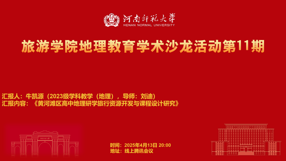 牛凯源同学以《黄河滩区高中地理研学旅行资源开发与课程设计研究》为题展开汇报。该研究阐述了黄河滩区高中地理研学旅行资源开发与课程设计。黄河滩区作为独特的地理区域,蕴含着丰富的自然与人文资源,为高中地理研学旅行提供了广阔空间。通过对黄河滩区地理环境、文化历史等资源的实地调研与系统梳理,深入挖掘其在地貌景观、生态系统、民俗文化等方面的研学价值。在此基础上,依据高中地理课程标准与学生认知特点,构建了以“自然地理探索”“人文地理体验”“生态保护实践”三大模块为核心的研学旅行课程体系,设计了多样化的研学活动与教学方法,旨在培养学生地理核心素养,增强其对黄河滩区地理环境的认知与保护意识,同时为黄河滩区教育资源的开发利用及高中地理研学旅行的开展提供理论与实践参考。