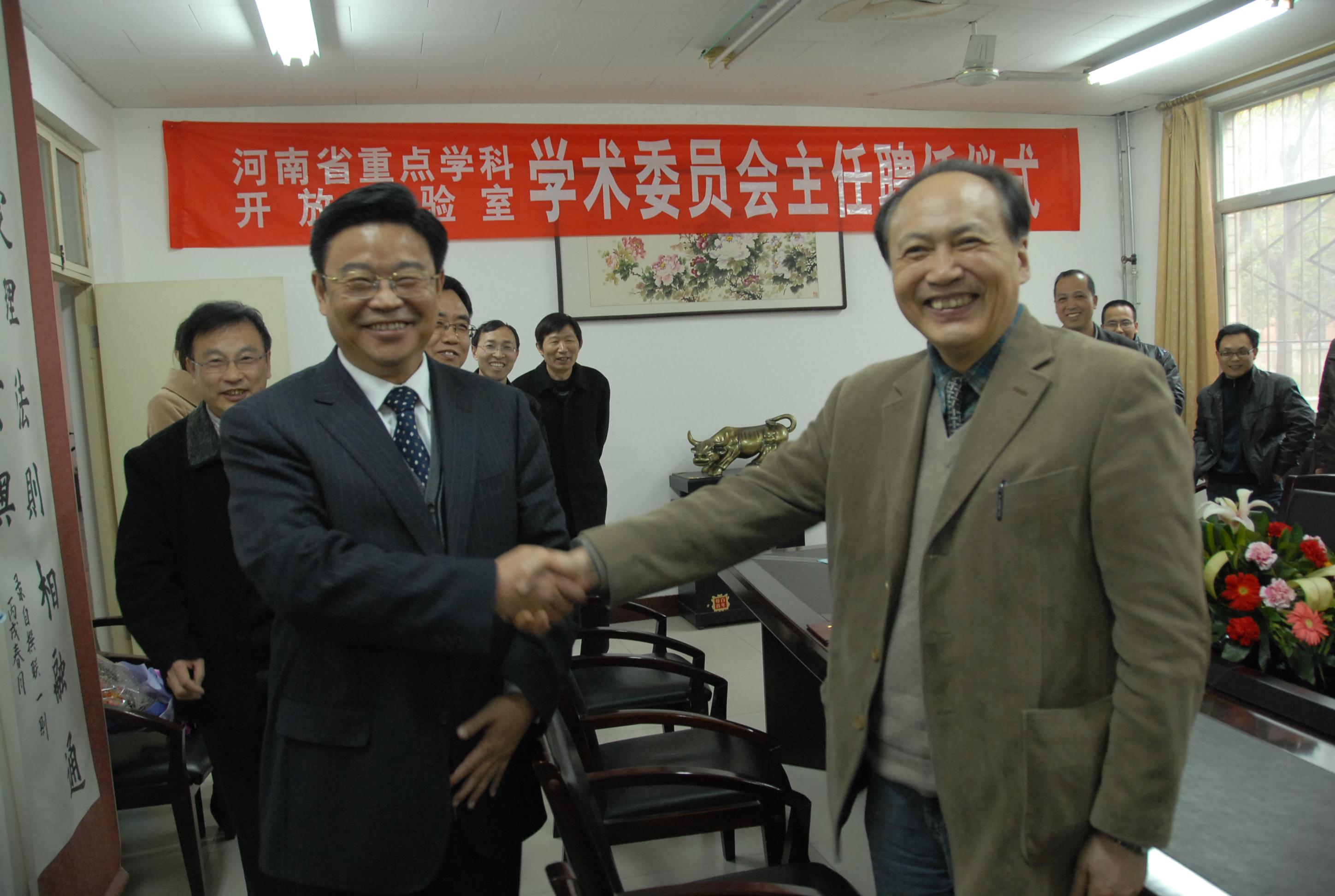 3月30日下午,河南省重点学科开放实验室学术委员会主任聘任仪式在数学与信息科学学院南楼103会议室举行。校长焦留成出席聘任仪式并为刘应明院士颁发聘书,校长办公室、数学学院负责人与部分青年博士、教授参加了聘任仪式。焦留成校长热烈欢迎刘应明院士的到来并与他亲切握手。