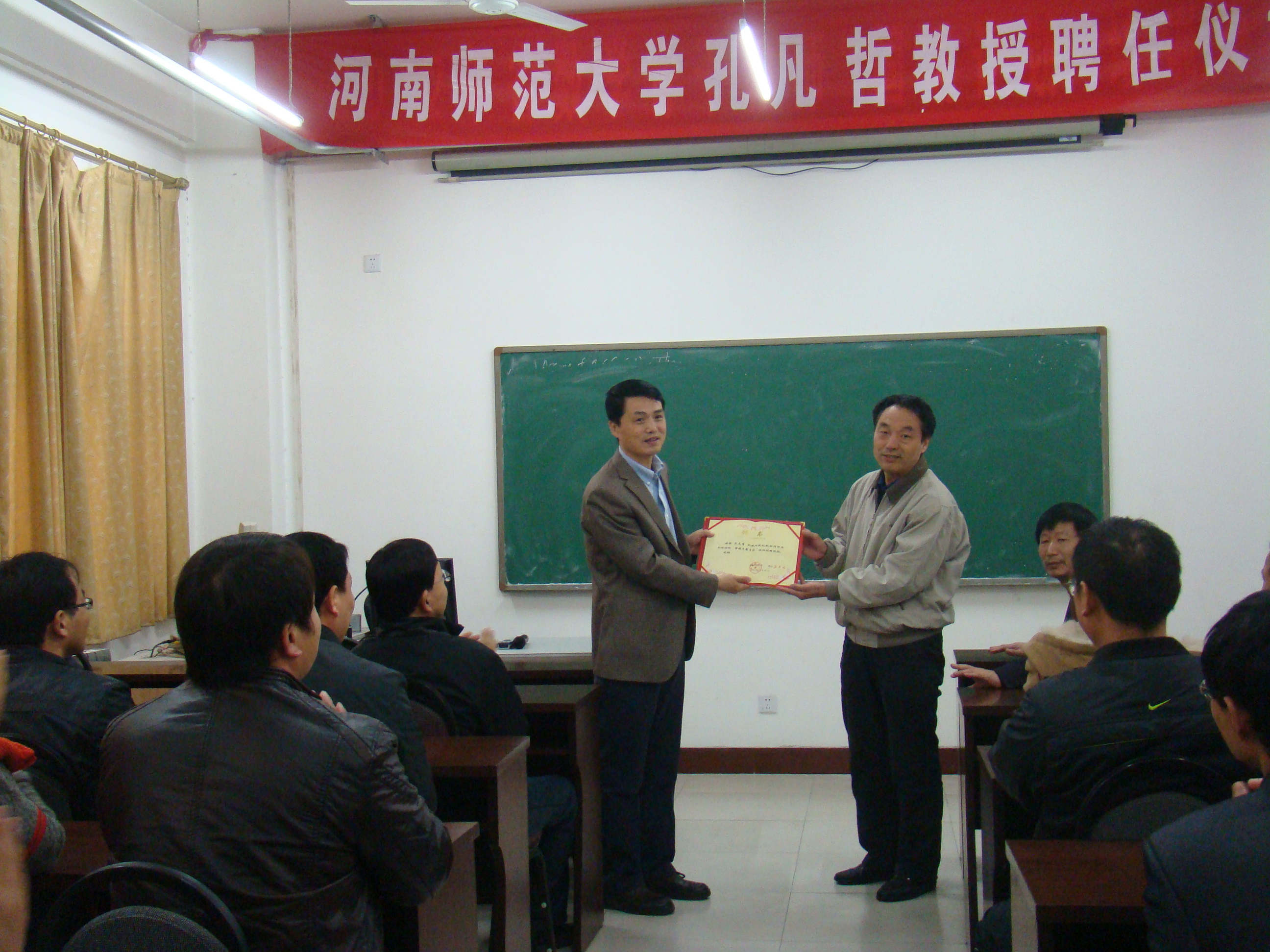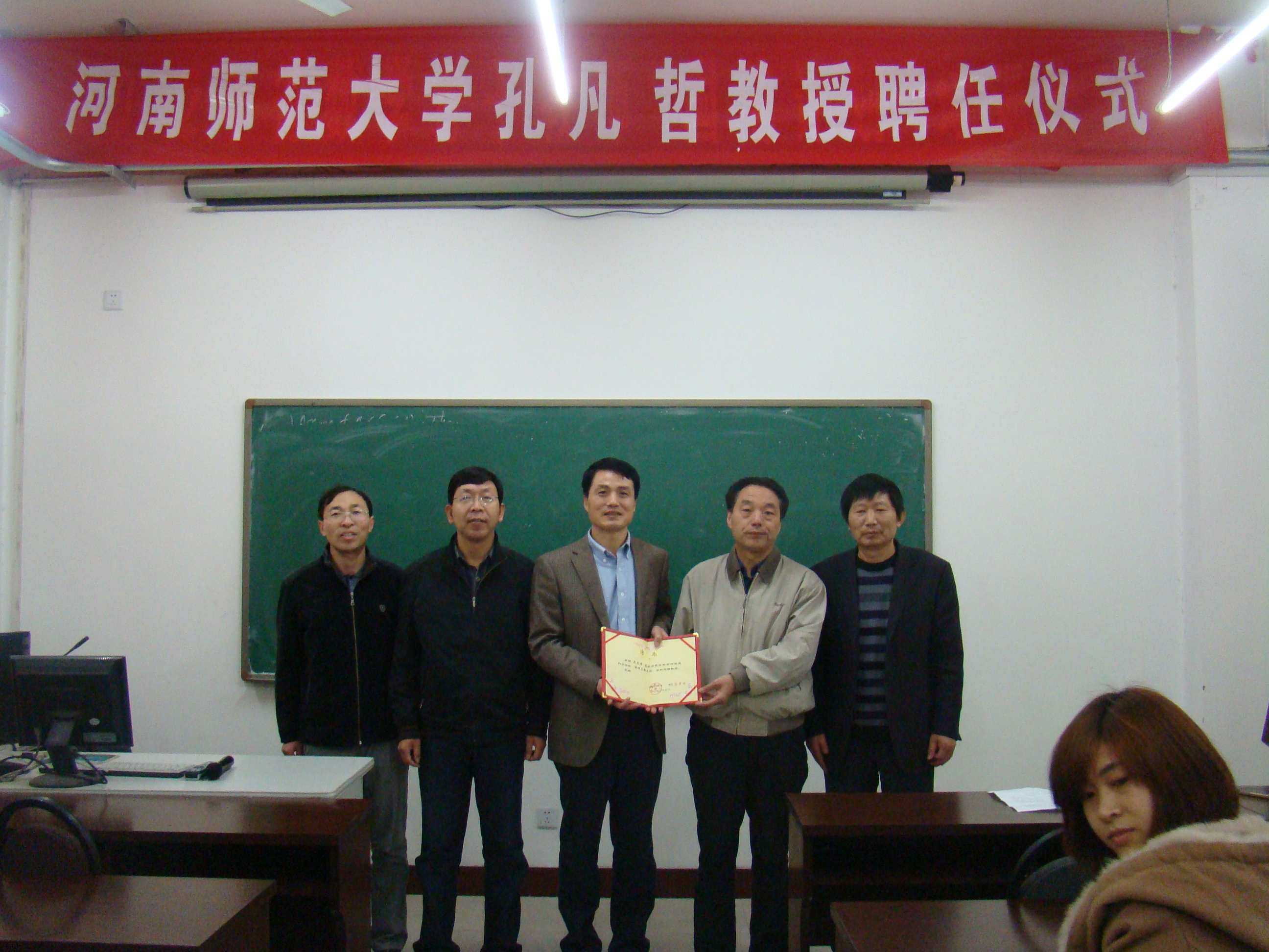 聘任仪式上,数学学院副院长柴新宽向与会人员宣读了孔凡哲教授的个人简历,代表学校向孔教授颁发了聘书。孔凡哲教授发言表示将加强与学院的密切合作,在学科建设、科研创新、人才培养等方面为学院的发展提供更多的信息和服务。人事处副处长巨永明代表学校对孔凡哲博导受聘我校短聘教授表示欢迎,并高度评价了孔凡哲教授的专业成就,相信孔教授的加盟能够带动数学学院相关学科更快地发展。