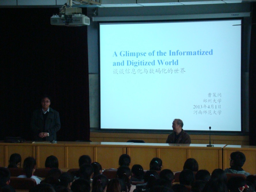 报告中,曹策问教授选择一些具体的直观案例,通过科普方式,简单介绍信息技术的数学基础和一些应用,他以其渊博的知识演示了数学是有用的,用深刻的思想展示了简单数学所描述的实际模型是奇妙的,这极大地鼓舞了同学们的数学学习热情,开阔了大家的学术视野。