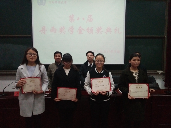 颁奖典礼上,副院长黄广月宣读了“丹雨奖学金”评选说明。2015至2016年度评选出刘嘉敏、黄玉婷、周春燕、陶莹四位同学分别获得一等奖和二等奖。随后,领导老师向获奖者颁发荣誉证书,并对获奖同学表示热烈祝贺。随后,获奖同学代表黄玉婷讲述了个人学习经验,希望全体同学积极行动起来,制定计划,养成良好学习习惯,不断挖掘自身潜力,争取取得更大进步。