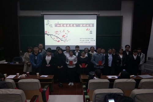比赛伊始,主持人介绍到场的评委和比赛规则。演讲过程中,20位参赛选手用不同的语言风格表达了对党共同的的认识与感恩。其中,中文组演讲赛中,学生乔靖以《青春献给党,喜迎十九大》为题,提出“因为平凡,所以伟大”的看法,号召大学生感恩党回报党;学生陈卓在演讲中表情自然,感情充沛,通过对党的发展历程和习近平总书记的期望的展示,让同学们更加知党爱党。英文组比赛中,学生高家欣以流利的英语口语向大家展示了大学生与党的联系,并以反腐剧《人民的名义》为例呼吁大学生爱党守法。赛后,我院2014级谭航和2015级何男分别对选手的表现进行精彩点评。两人均给予参赛选手肯定与赞扬,其中对学生宋梦宣的表现进行了高度评价。同时也针对选手的发音、语调和肢体动作等方面进行了细致的点评并提出自己的建议。最终,宋梦宣荣获中文组第一名,吴孟婕和吕兆方获得第二名,乔靖、吕淑睿和王丰获得第三名;英文组中,选手赵明蕊以流利的口语和精彩的表现摘得桂冠,马硕和侯金霞荣获第二名,高家欣、李明琦和李琳荣获第三名。