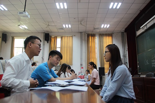 本次面试采用“二对一”的形式:两位负责人面试一位学生,同时增设观众席,学生们轮流面试。每位学生在参加面试的同时,也能够在台下观摩、学习借鉴其他学生的面试表现,取长补短。在面试过程中,负责人提出相应的问题来考察学生对于所加入服务队的态度和想法,据此判断学生的综合素质。其中,在对调研服务队的面试工作中,面试负责人多注重考察学生实际问题的处理,比如:活动紧急却急需处理,如何统筹安排工作,作为队长该如何及时跟进全队的工作进程。面试过程虽紧张严肃,但各位学生都纷纷表明自己的心迹,要用实际行动、踏实的工作态度完成每项任务, 尽职尽责为团队服务。