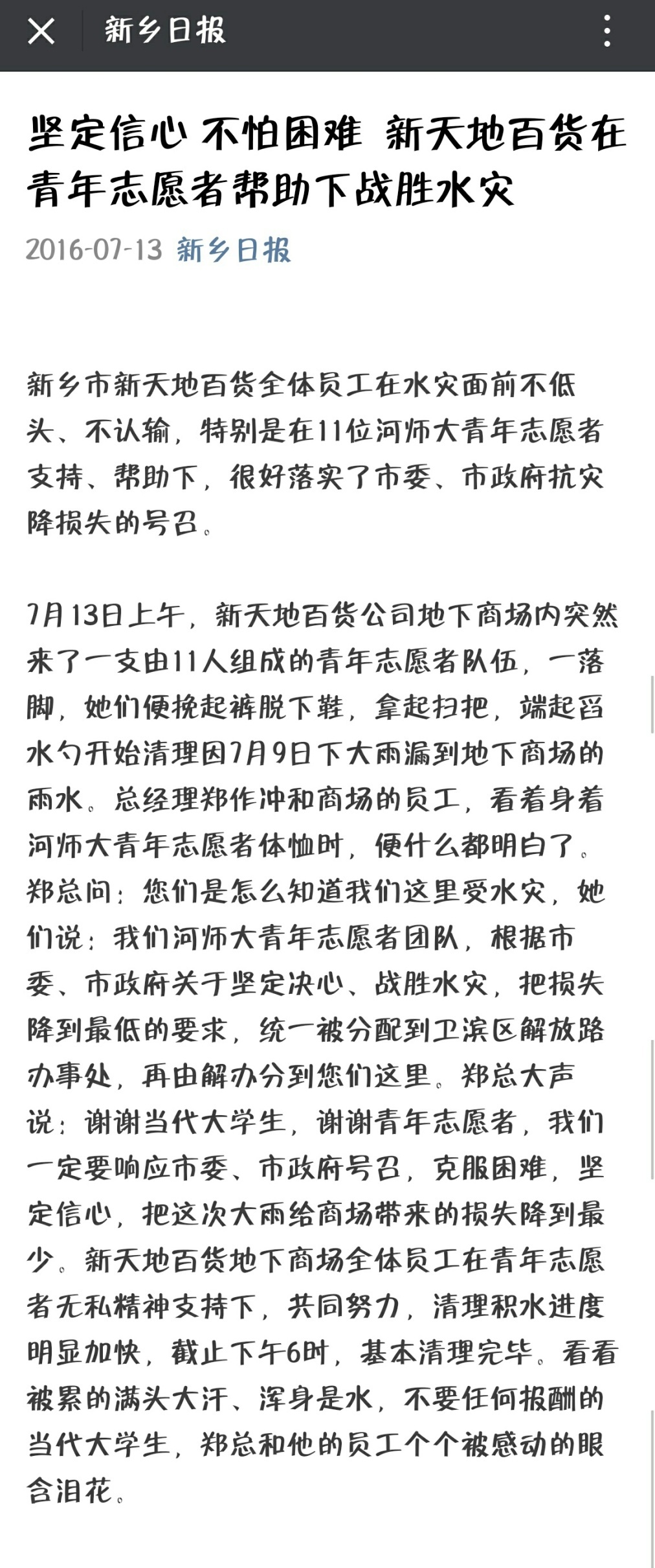 走进教育机构,从教育机构的现状了解现在社会教育的现状,并以此展开调研,并对调研结果进行分析研究,从而向有关部门提出相关建议。 七七事变,是我们心中永远遗忘不了的伤疤。而又恰逢七七事变80周年,我们走访老兵,烈士陵园前开展宣讲、红色字谜等活动,警醒大众,勿忘国耻,振兴中华。 炎炎夏日,为交警缓解压力,帮环保工人缓解压力,并向他们发放“藿香正气水”等解暑药品。 走进环保局,向环保局专业人员了解现在环境状况,并与环保局展开合作进行环保宣传页的发放。并以街头采访,网络问卷等形式展开有关环保的调研,并运用所学数学建模等知识建立数学模型,最终将结果反馈于环保局,为环保尽自己的一份力。 团队尽可能的利用学科特色知识,对于问题从各个方面进行调研总结,并且建立雨污分流治理的数学模型、构建交通动态优化等数学模型,尽可能为新乡市城市建设建言献策。 而且我们的活动还被各大新闻媒体所报道,得到了社会各界的广泛好评。 |