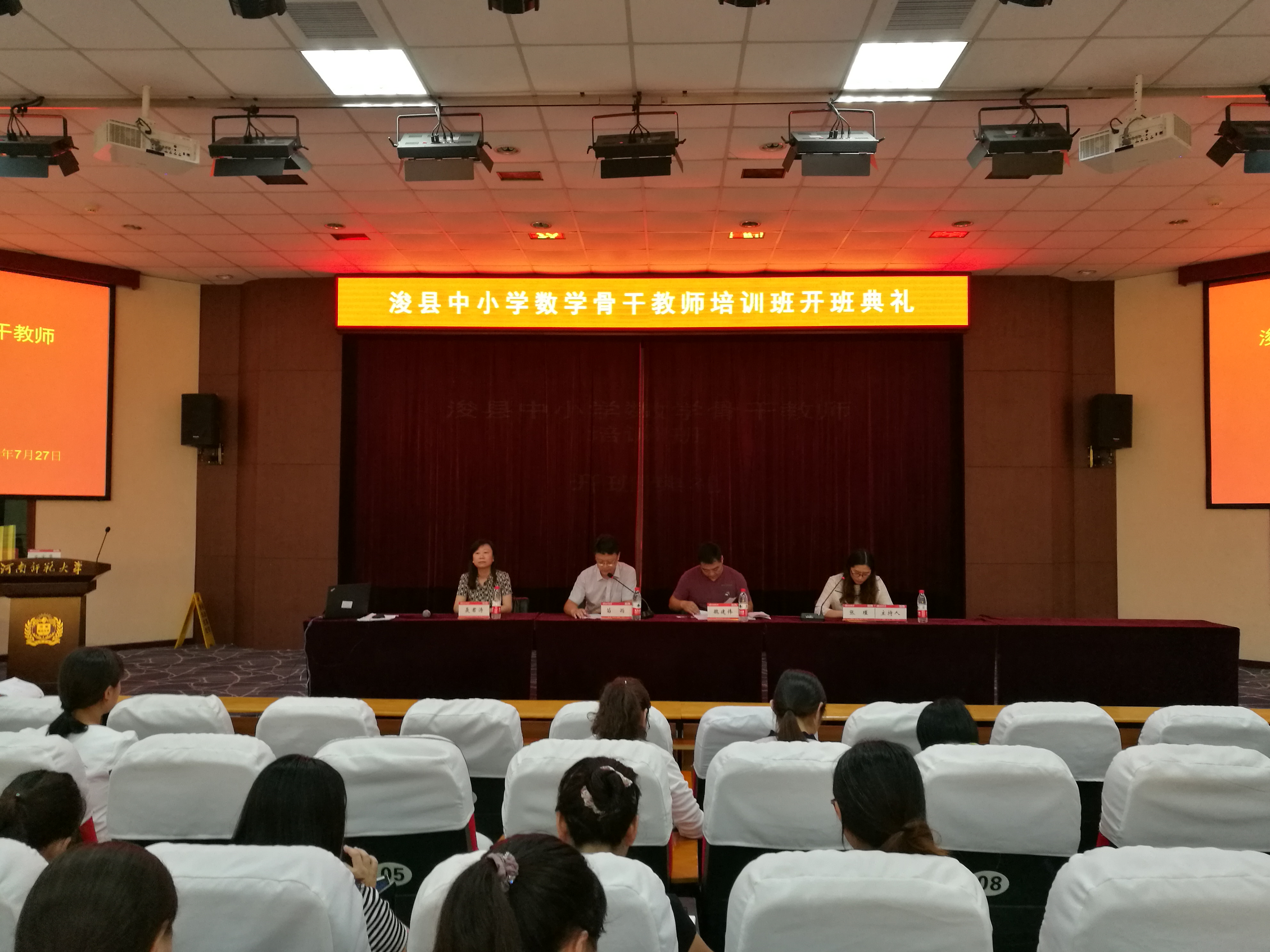 7月27日上午,浚县初中、小学数学教师培训班在物理学院报告厅举行。浚县教育体育局魏建伟股长、我校继续教育学院副院长聂君涛、我院院长苗雨参加开班仪式,仪式由我院副院长张瑾主持。