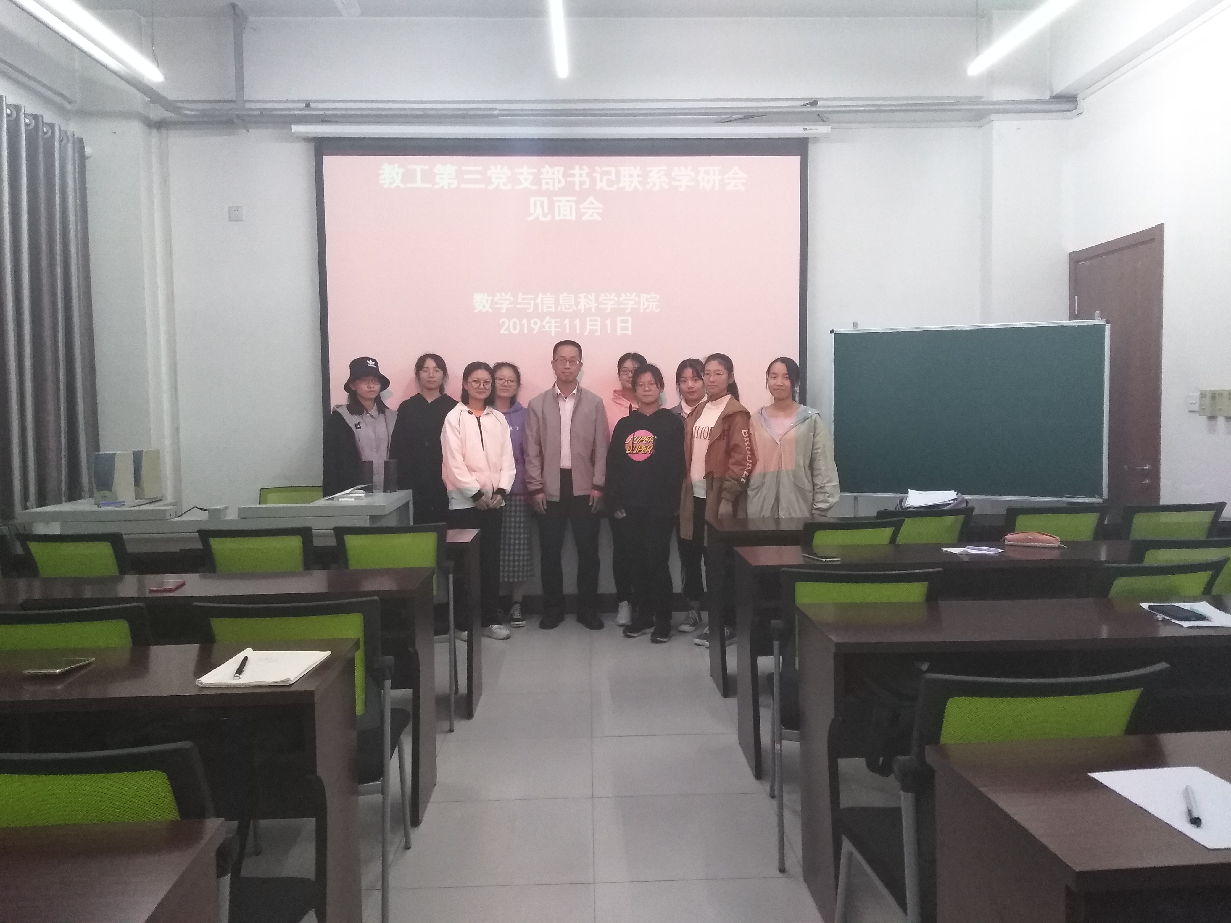11月1日晚,教工第二党支部书记裴永刚与学院学研会干事在数学楼107举行见面会。学研会负责人介绍了近一年来本分会举办过的活动,裴永刚向学研会干事了解了学研会的工作情况,建议学研会要注重以时政热点为基础展开活动,明确今后的发展目标和活动意义,并及时在学院网站和河南师范大学学研会主页做好活动宣传和记录工作。另外推荐观看《这就是中国》纪录片节目,利用《学习强国》APP了解国际国内时事热点。此外,裴永刚对学研会同学的学习和生活给出了建议,鼓励多去图书馆,养成阅读习惯,重视体育运动,锻炼好身体,保持和家人联系等。