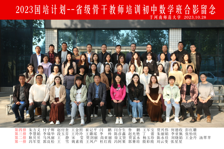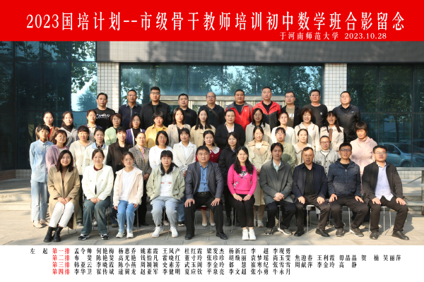 2023年10月28日上午,“国培计划(2023)”——河南省农村骨干教师能力提升项目——省级骨干教师、市级骨干教师培训初中数学班在数学与信息科学学院报告厅隆重开班。数学与信息科学学院主管副院长王凤产教授出席了开班典礼并致欢迎词。