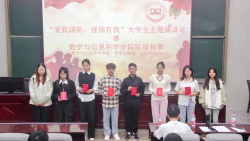 正值祖国75周年华诞来临之际,为深入推动爱国主义教育,增强学生国家安全意识,10月7日晚,数学与信息科学学院于学院报告厅举办“爱我国防,强国有我”大学生主题演讲比赛。2021级兼职辅导员李寿浩、2024级兼职辅导员闫梦担任评委,学院学生踊跃参与。