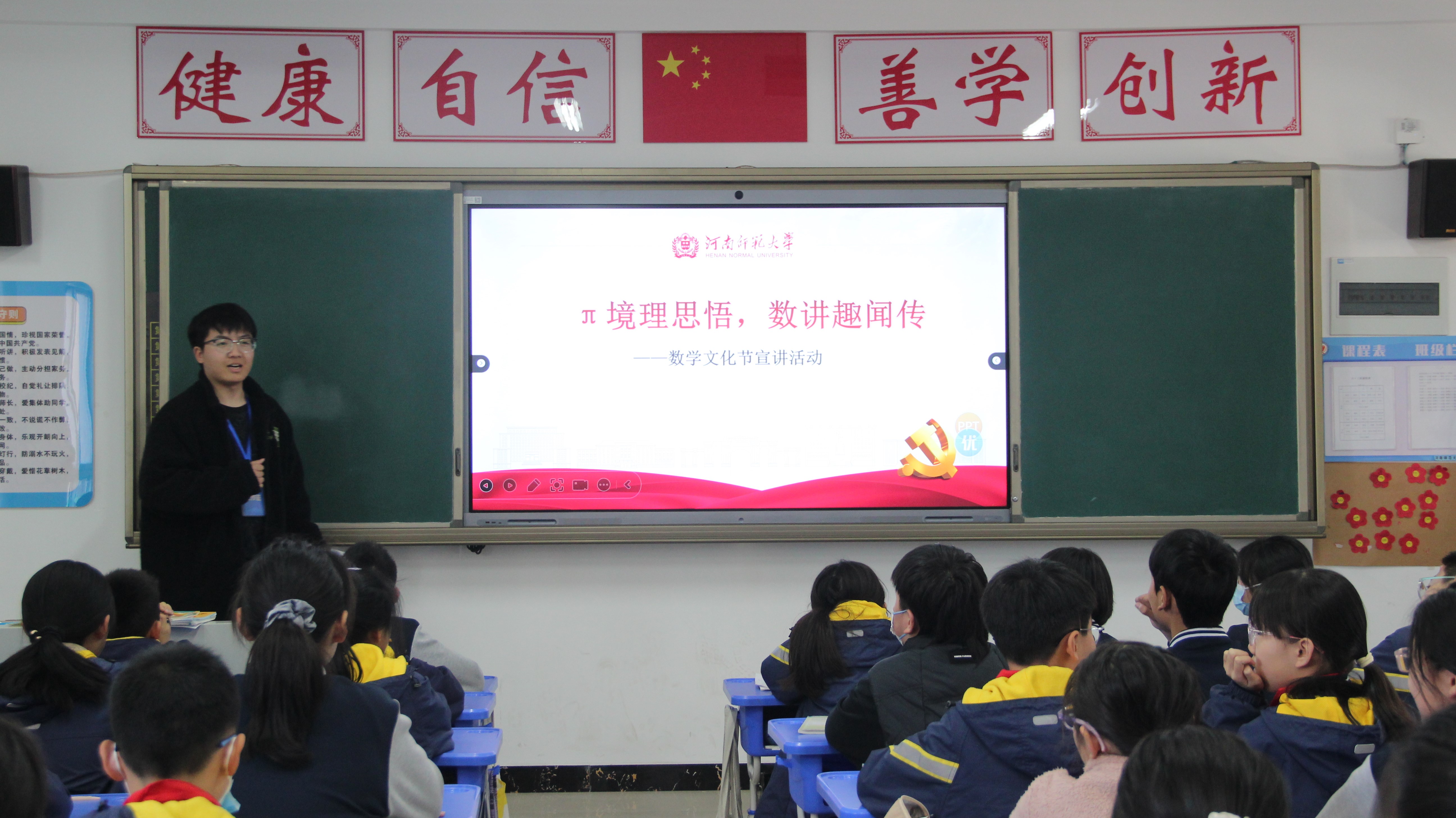 为传承科学精神,弘扬数学文化,3月18日下午,数学与统计学院“数聚青春”数学文化宣讲团队赴河南师范大学附属小学开展“π境理思悟,数讲趣闻传”数学文化宣讲活动。