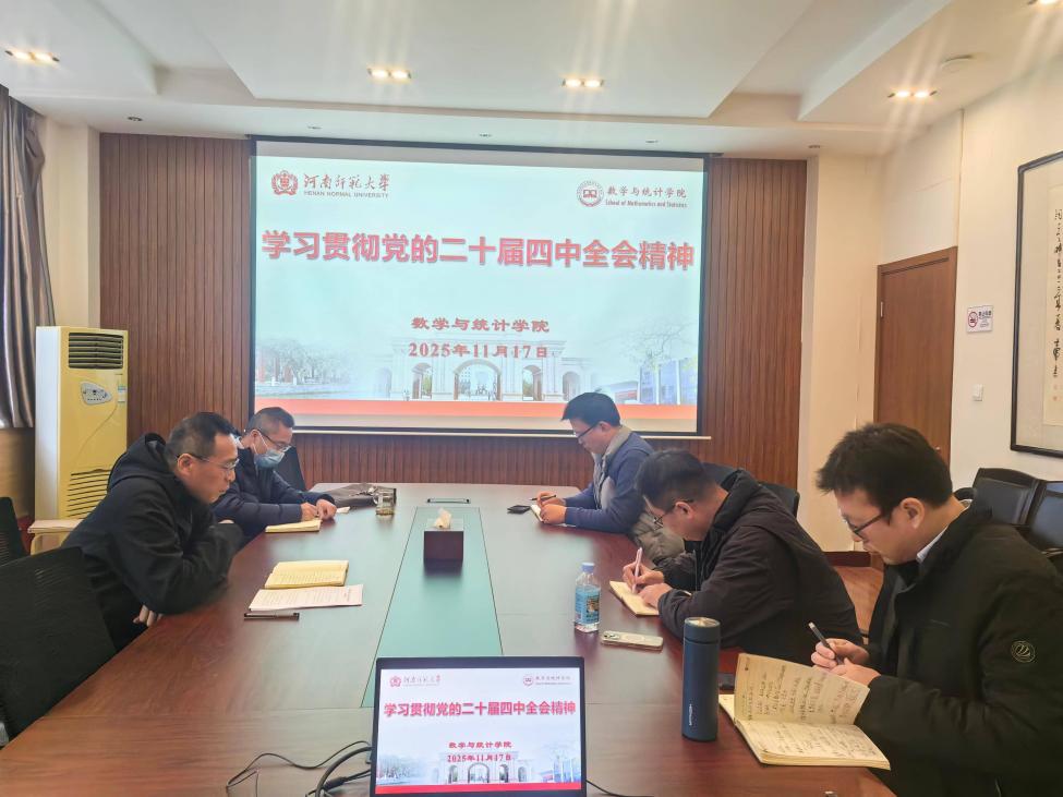 为深入学习贯彻党的二十届四中全会精神,11月17日上午,数学与统计学院(密码学院)召开党的二十届四中全会精神专题学习会。学院理论学习中心组成员参会,会议由学院党委书记宋艳兵主持。
