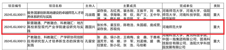 5月15日,河南省教育厅发布《关于公布2024年度河南省高等教育教学改革研究与实践立项项目的通知》(教高〔2024〕146号),依托我院申报的重大项目《职普融通、产教融合、科教融汇:地方高校新型现代产业学院建设研究与实践》获批。