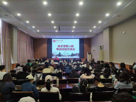 会议伊始,张陆天首先向同学们介绍了本次经验交流会的意义和到会老师和学长学姐的基本情况。首先,由优秀校友河南财政金融学院讲师、川美硕士崔一巍进行了艺术类考研专题讲座,崔老师长期指导身边学生考研,有丰富的艺术考研辅导经验。随后,由上岸中央美院、西安美院、河南师范大学、陕西师范大学、东北师范大学、南昌大学的6位2017级优秀学子通过不同的专业视角从院校选择、复习方法、心路历程等方面真切地向同学们分享了他们的经验。会议最后,张陆天对本次交流会做了总结。交流会进行了近三个小时,干货满满,收获了同学们的一致好评。