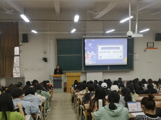 新学期伊始,为树立新学期目标,明确奋斗方向,加强学生日常管理,美术学院于3月3日下午4点在求是中楼102举办了“筑梦新学期·一起向未来”主题班会,美术学院党委副书记单一飞、2018级辅导员马倩和2018级全体学生参加了此次班会。