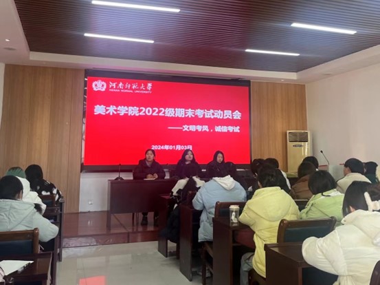 通过召开本次期末考试动员会,同学们明确了复习目标,端正了学习心态,坚定了诚信考试的决心。相信美院学子定会拿出智慧和勇气,有序复习,沉着应试,为这一学期画上完美的句号。