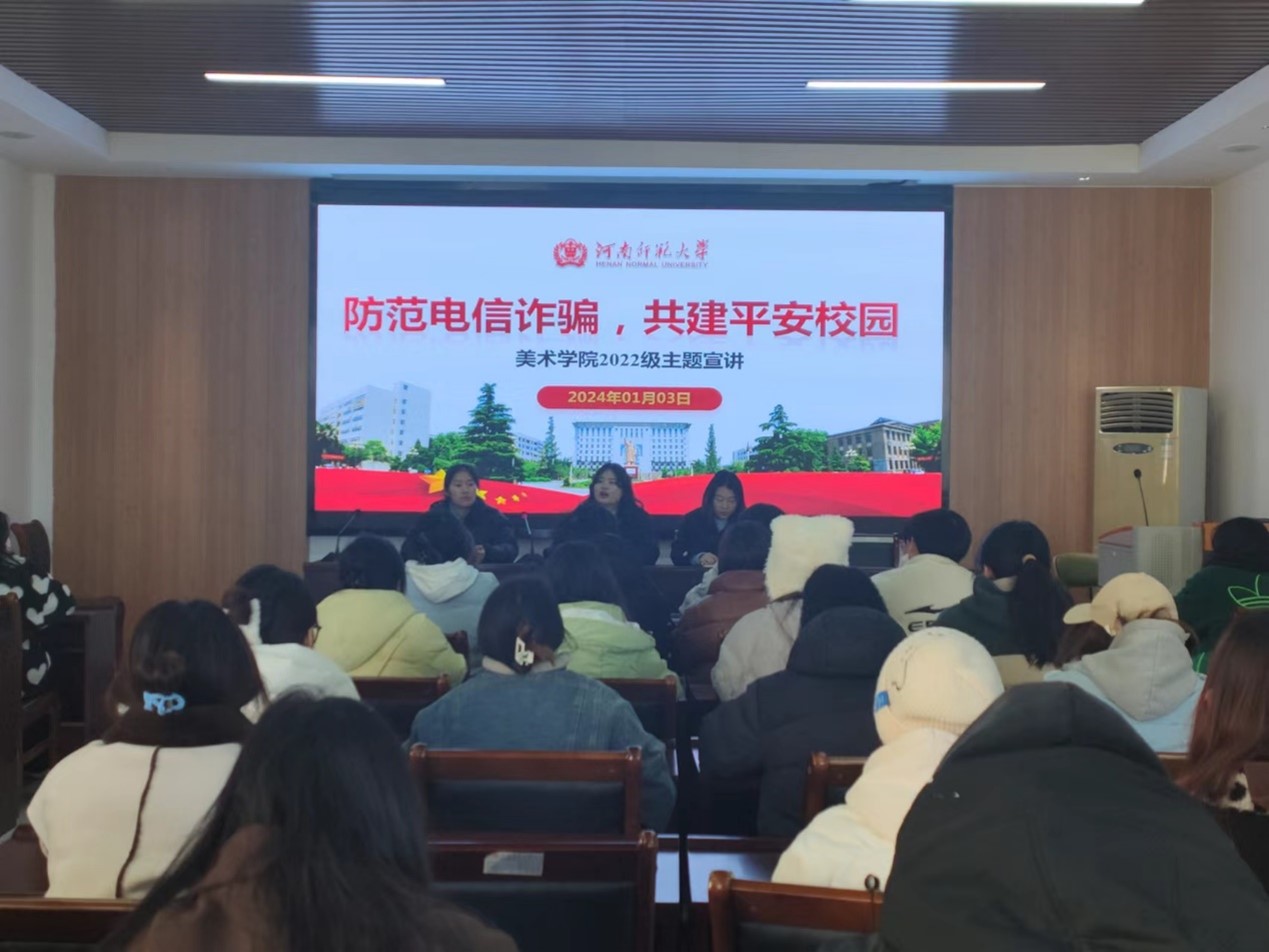 为增强学生的防诈骗意识,切实提升学生的综合素质和防诈骗能力。美术学院于1月3日中午在办公楼311教室召开“防范电信诈骗,共建平安校园”主题会议。2022级专职辅导员罗爽、兼职辅导员牛灵丽、胡雅鑫,以及全体班委共同参与。